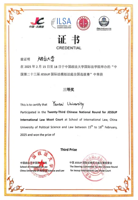 2014年获得“杰赛普”国际法模拟法庭国际比赛二等奖;2015年获得“杰赛普”国际法模拟法庭国际比赛二等奖,队员获Best oralist;2021年获得“杰赛普”国际法模拟法庭国际比赛三等奖;2024年获得“杰赛普”国际法模拟法庭国际比赛三等奖;2025年获得“杰赛普”国际法模拟法庭国际比赛三等奖。
