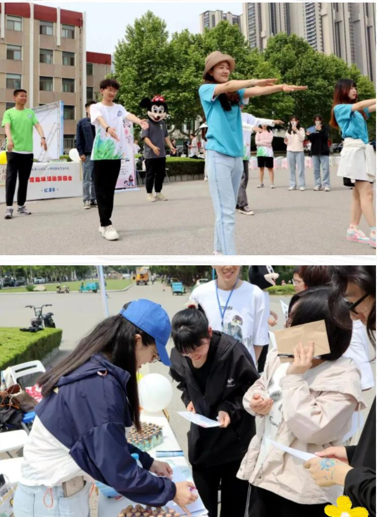 “吾爱吾·心之旅”心理健康月之心理趣味活动游园会活动中来,并为大家带来了“忆童年—法润我心 无需‘操’心”活动。同学们在领操员的带领下一起重温了小学生广播体操,并通过“无忧空间”“能量空间”领取能量瓶子,现场500多个能量瓶被领取一空。每只能量瓶内都塞了一张充满正能量的祝福语,让大家接受了一波“正能量补给”。