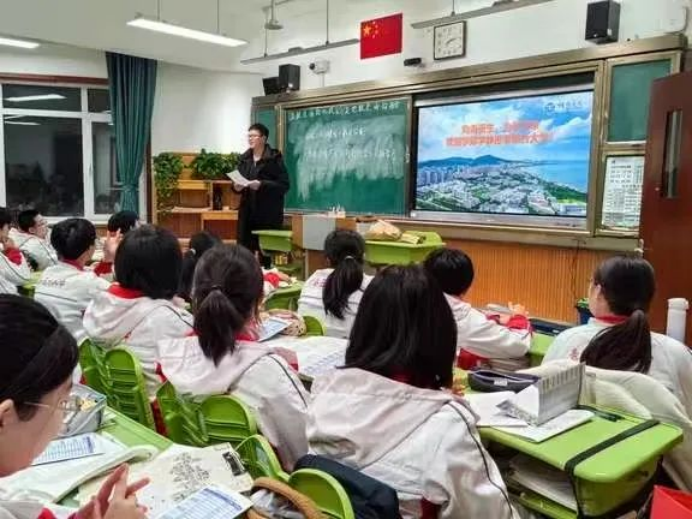1月20日,法243-1班黄岳峰和法241-2班戴若晗同学回到高中——山东省青岛第五十八中学,开展宣讲活动。在教室内,两位宣讲成员与学弟学妹们齐聚一堂,共同开启了一场关于大学梦想与生活的精彩分享之旅。