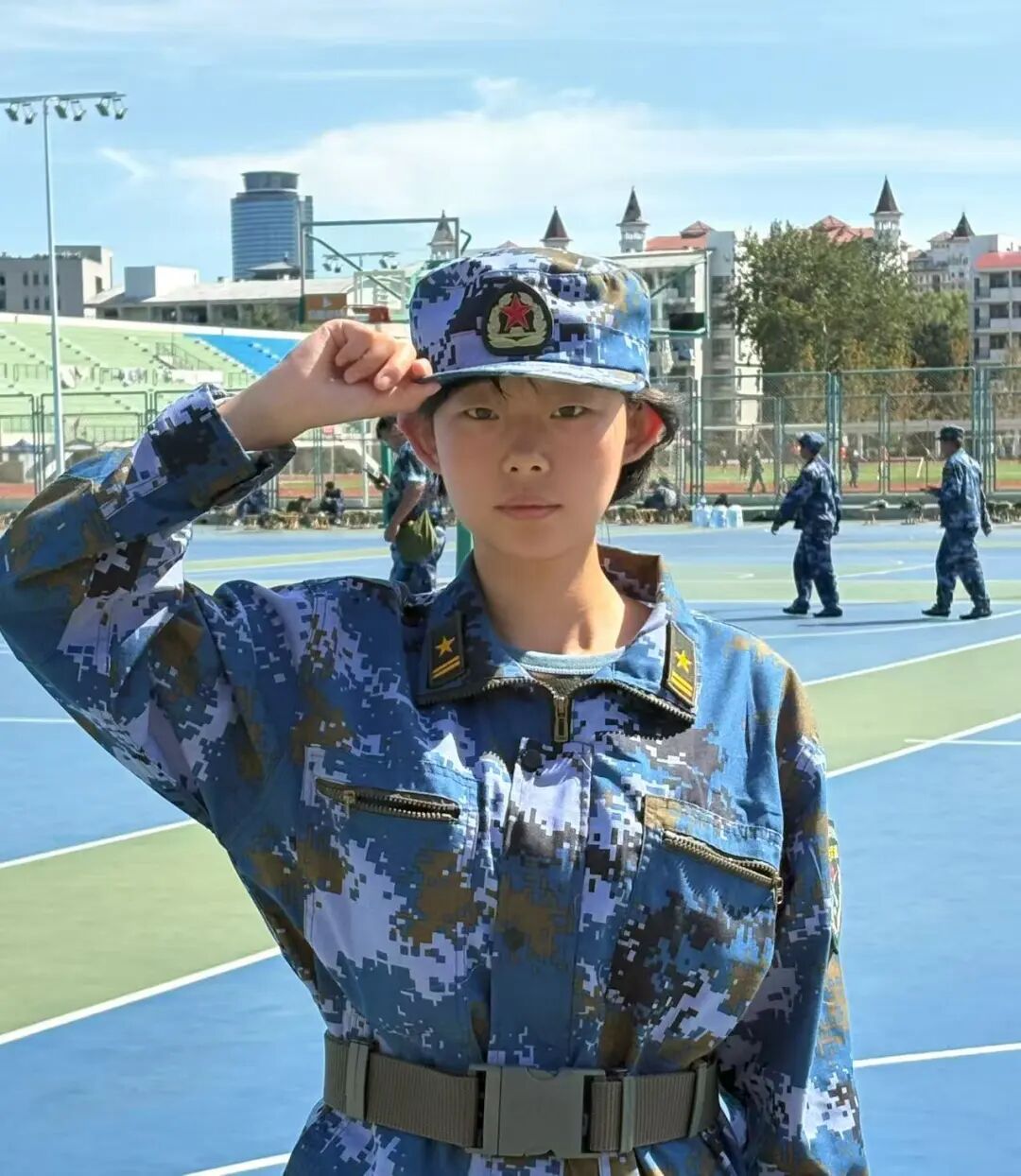 晨光刚漫过操场,迷彩身影就已列队整齐。站军姿时,汗水顺着帽檐往下流淌;练转体、踢正步,口号声喊得震彻云霄,每一个动作都在反复打磨里愈发标准。