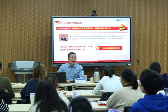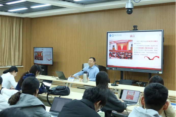 党的二十届三中全会2024年7月15日至18日在北京召开。此会议在以中国式现代化推进强国建设、民族复兴的关键时期召开,是全面深化改革、推进中国式现代化的总动员与总部署。段志国书记以习近平总书记在党的二十届三中全会上的重要讲话精神为切入点,深入浅出地引导学生深刻认识全会以来党和国家事业取得的重大成就,让韩国av