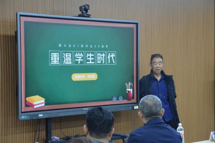 原校长郭明瑞、房绍坤,法61班班主任汪建成与法61班校友共同参与了本次活动。