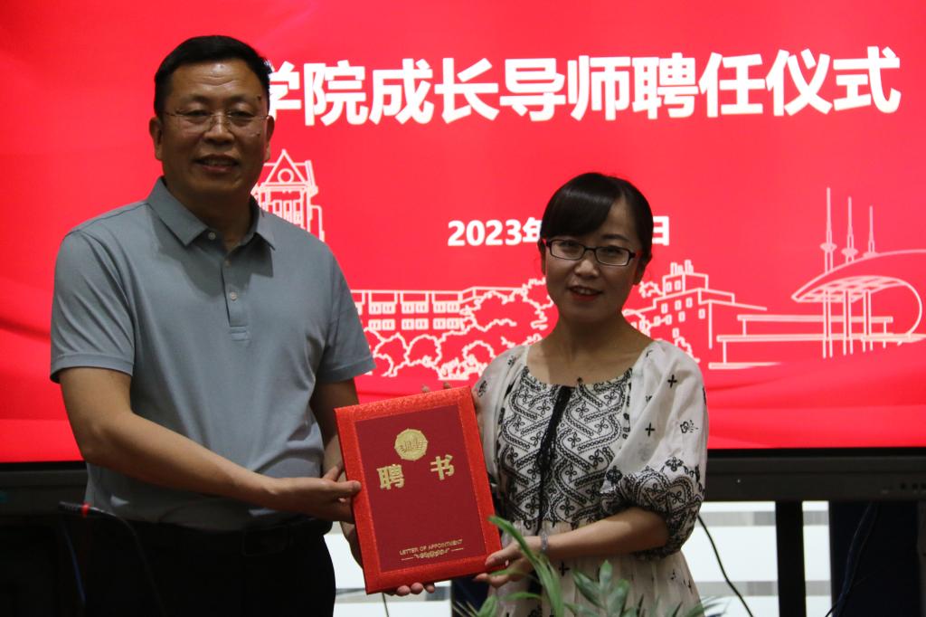 党总支书记段志国为班级成长导师颁发聘书。随后,班级成长导师代表、法221-1班成长导师周娟老师发言。周娟老师首先对学校及学院提供的宝贵机会表示感谢,并从成为学生成长的引导者、做好学生和学校间的联络者、做好学生成长的守护者三个角度提出了作为成长导师未来的工作方向。