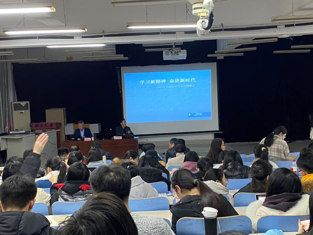 党总支组织教工党员、学生党员在213举办党的十九届五中全会辅导报告会,邀请了滨州医学院曹锡山教授作“学习新精神,奋进新时代”主题报告,会议由陆诗忠教授主持。