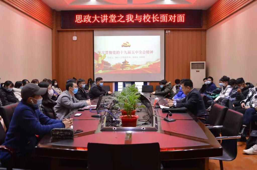 孙祥斌结合自身的理论学习和实践思考,深刻阐释了党的十九届五中全会的重大意义,系统回顾了决胜全面建成小康社会取得的决定性成就,从认真学习全会精神,准确把握全会要义;认真贯彻全会精神,推动学校高质量发展;学习全会精神,做新时代好青年三方面为同学们进行了精彩的讲解。