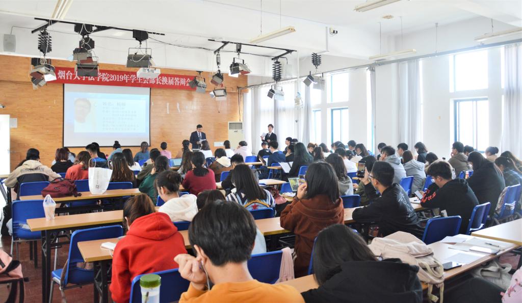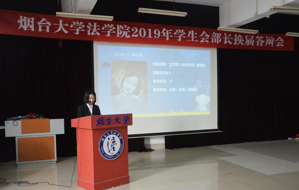 学生会取得的各项成就。随后,部长换届答辩会正式开始,学生会办公室、文艺部、体育部、宣传部、监察部、新闻部、各部门干事依次上台发言,各位竞争者总结2018年自己在学生会这个集体中的收获的得与失,继而从自身优势、工作思路以及未来的畅想进行演讲,并针对自己所在部门,提出问题列出解决方法。努力构建一个有能力、有组织、有纪律的团体。各位干事文采斐然,语言犀利,逻辑严密,演讲铿锵有力,语惊四座。尤其是各部干事对于部门存在的弊病勇于揭露,对于取得的成绩予以肯定,正是表现了优秀领导者所具备的敏锐洞察力与领导力。最终同学们依据自己的判断,投出自己手中宝贵的一票给心仪的竞选人。