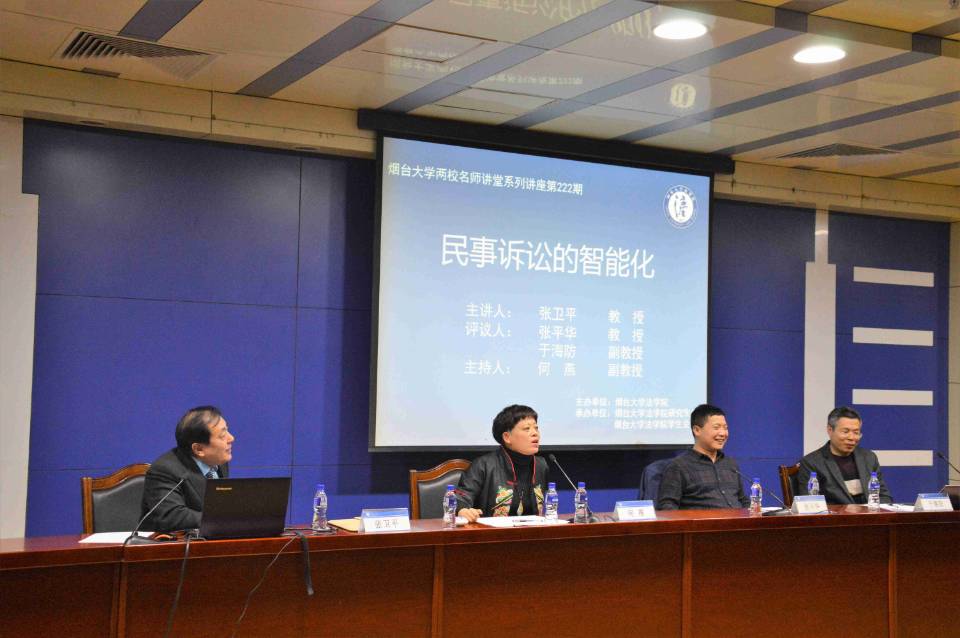 师生作“民事诉讼的智能化”的专题讲座。讲座由民事诉讼法学科带头人何燕副教授主持。张平华教授、于海防副教授评议。