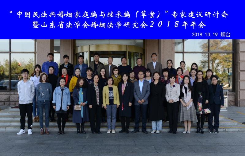 2018年10月19日-20日,“中国民法典婚姻家庭编与继承编(草案)”专家建议研讨会暨山东省法学会婚姻法学研究会2018年年会在烟台东山宾馆举行。本次会议由山东省法学会婚姻法学研究会主办,韩国av 承办。