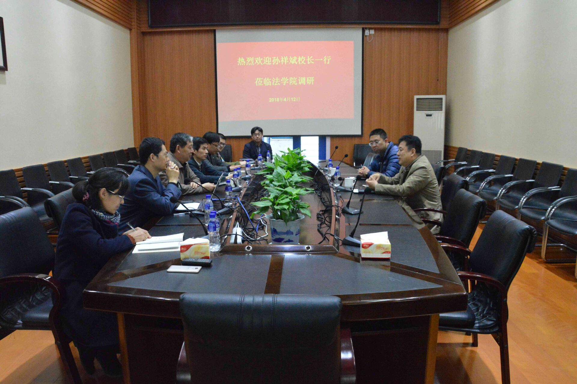 党政班子成员、教师代表参加调研活动。孙祥斌一行首先参观了学院的教学实验室和学术工作室,对学院功能分区和法治文化建设,以及提升育人环境和人才培养质量提出了指导性意见。