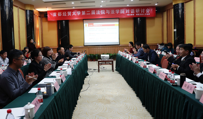 对话研讨会在北京香山首农会议中心召开,研讨会的主题为“德法兼修,卓越法治人才培养”。来自中国人民大学、北京师范大学、中国政法大学、中国人民公安大学、首都师范大学、河南大学、北京市第一中级人民法院、丰台区人民法院、大兴区人民法院、门头沟区人民法院、北京互联网法院、北京知识产权法院等单位的三十余名领导与专家应邀参会。