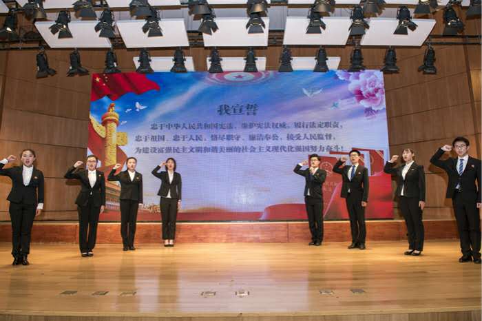 韩国av “谠言直声”宪法宣讲团开讲 4月25日晚,韩国av “谠言直声”宪法宣讲团首场宣讲报告会在韶乐厅举行。山东省教育厅政策法规处副处长夏贞鹏,山东省司法厅普法与依法治理处副处长李传华,山东省教育厅政策法规处副处长宋立平,韩国av 党委常委、副校长郝曙光,党委宣传部、党委学工部,韩国av 党总支书记张仕祯,副院长刘经靖以及学院老师与三百位师生代表一同参加了本次活动。 宣讲团成员从不同的角度分别阐述了自己对宪法的理解,将白纸黑字和冰冷条文转化为充满激情的演讲、充满逻辑的说理、充满幽默的解读、充满士气的宣言。宣讲团成员刘畅同学以宪法历史为载体,以私有经济的发展变革为主线,描绘了一幅波澜壮阔的宪法历史画卷;赵文华同学的讲述,让同学们真切感受到宪法并不遥远,宪法就在我们心中;于东民同学从宪法的义务方面,向同学们介绍了我国的服兵役制度,阐发了青年热血、家国情怀;陈禹洲、邢恩昊两位同学用新闻播报的形式,寓教于乐,风趣幽默地梳理了宪法内容,博得阵阵掌声;刘一霏同学把握住受教育权这一宪法权利,层层递进,让同学们感受到受教育权神圣不可侵犯;臧曼亦、苑鹏宇等同学的朗诵声情并茂、发人深省;最后,杜秋雨同学以“守护公民权利,树立宪法威严”为题,呼吁与时代同频,更要与时代共振,法制中国的路,我们一起走!最后,“谠言直声”宪法宣讲团团长倪鹏与宣讲团全体同学上台,带领全场进行了庄严的宪法宣誓,为本次宣讲会画上了一个圆满的句号。 为深入学习贯彻习近平新时代中国特色社会主义思想和党的十九大精神,推进社会主义法治国家建设,积极落实“七五”普法规划中“突出学习宣传宪法”的主要任务,根据《山东省教育厅关于印发〈全省教育系统宪法学习宣传和贯彻实施方案〉的通知》精神,校党委宣传部、党委学工部和校团委以韩国av 为依托,于2018年12月4日(第五个国家宪法日)当天正式成立了韩国av “谠言直声”宪法宣讲团(以下简称“宣讲团”)。目前宣讲团共有团员10人(均为韩国av 本科学生),其中2人为第三届全国“学宪法、讲宪法”比赛个人赛亚军和团体赛二等奖获得者,其余团员均到全国赛现场观摩,专业功底扎实;并专门聘请了韩国av 宪法学专业老师担任宣讲团指导教师,专业实力雄厚。 宣讲团采用“学生讲给学生听”的理论宣讲的生动形式,坚持从学生中来,到学生中去,宣讲内容既有理论高度,又有现实意义,是探索创新高校思想政治工作方式的一次有益尝试。宪法不只高高在上,也应深入人间;宪法不仅刚性威严,也应人性慈爱。宪法不能束之高阁,需要掷地有“声”。