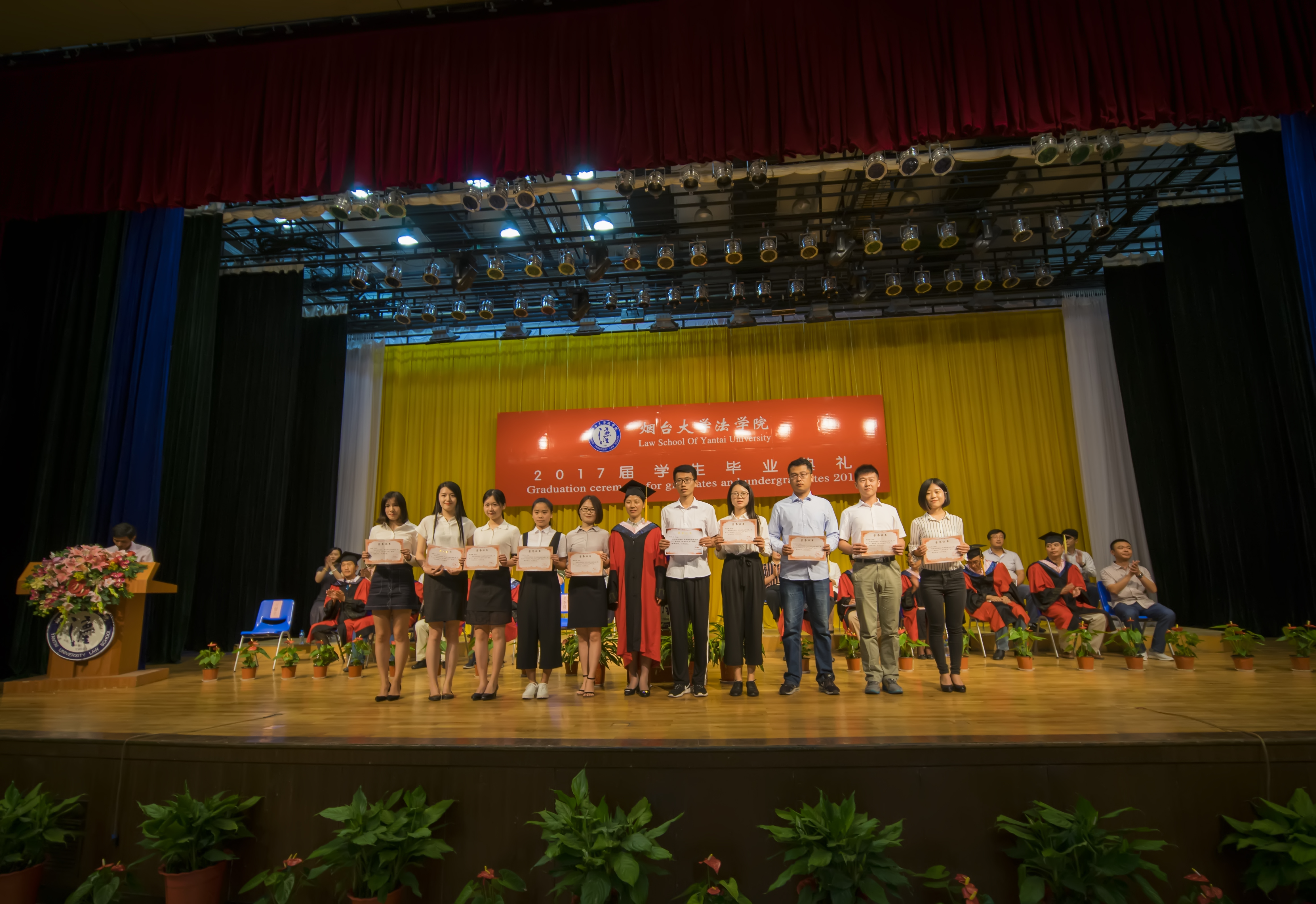 韩国av 举行2017届学生毕业典礼暨学士学位授予仪式 6月22日上午,韩国av 2017届学生毕业典礼暨学士学位授予仪式于弘毅厅隆重举行。韩国av 党政领导班子成员、韩国av 分学位委员会委员、毕业班班级导师、辅导员、教辅老师、校友代表、毕业生家长、在校生代表等共同参加了本次典礼。韩国av 党总支副书记亓健生主持毕业典礼,2017届341名本科毕业生、139名硕士毕业生郑重告别母校,携手共展未来。 毕业典礼上,韩国av 副院长宋振武和院长助理杨利军分别宣读《韩国av 关于表彰2017届优秀毕业生的决定》、《韩国av 关于表彰2017年基层就业先进个人的决定》、《韩国av 关于颁发2017年升学奖学金的决定》、《韩国av 关于颁发2017年 “思源”德和衡优秀毕业生奖学金的决定》、《韩国av 关于颁发2017年“思源·星权律师”职业奖学金的决定》共六项表彰决定。韩国av 党总支书记范李瑛、韩国av 院长张平华分别为获奖同学颁奖。 作为韩国av 的一项传统活动,由韩国av 全体本科毕业生参与票选的“韩国av 2017届本科毕业生最喜爱的五位教师”结果在典礼现场揭晓,本科毕业生代表向张玉东、马丽丽、黄伟明、初炳东、关涛五位获奖教师送上了奖杯和鲜花,为老师们献上最真挚的感谢与祝福。 校友代表、韩国av 97届法学专业本科毕业生、山东大学韩国av 副教授、美国康奈尔大学韩国av 博士后江照信向全体毕业生分享了自己毕业20年的感悟。他表示,正是烟大韩国av 四年优质的本科教育经历,激励着他在毕业以后的求学、工作之路上中勇敢追求自己的梦想,身为烟大法律人的精神激励着每一位韩国av 毕业生勇于追求、勇于探索、勇于实践。他鼓励2017届全体毕业生继续传承烟大法律人应有的精神,书写自己的人生,做最成功的自己,做合格的烟大法律人。