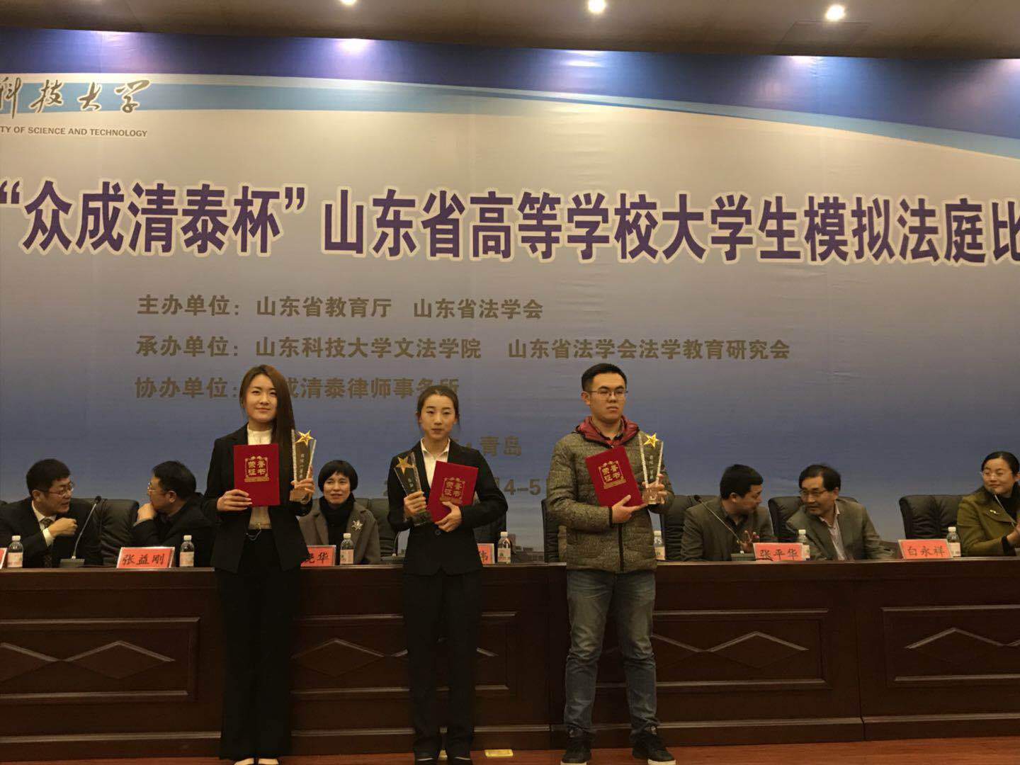 代表队获“众成清泰杯”山东省高等学校大学生模拟法庭比赛一等奖