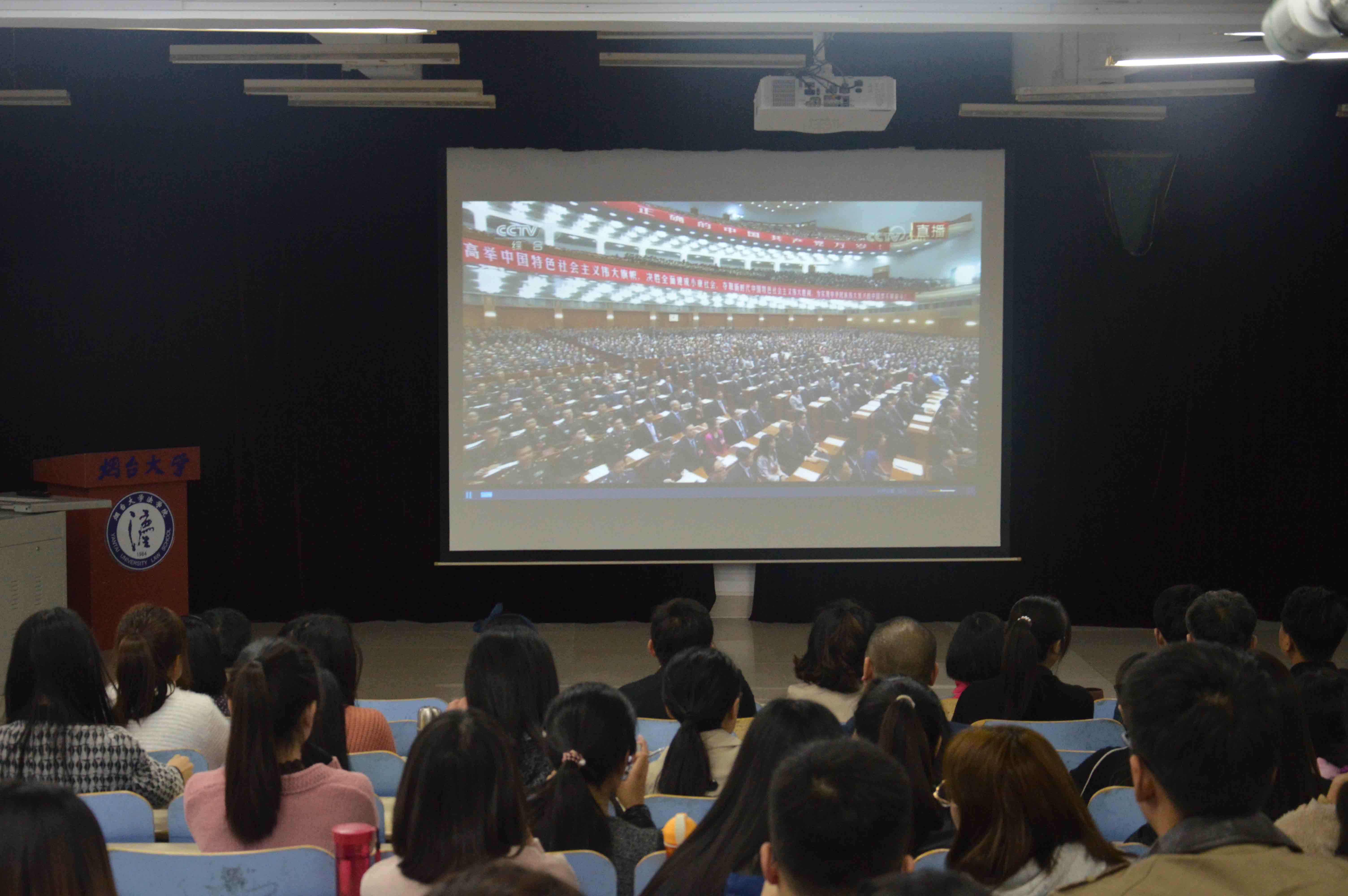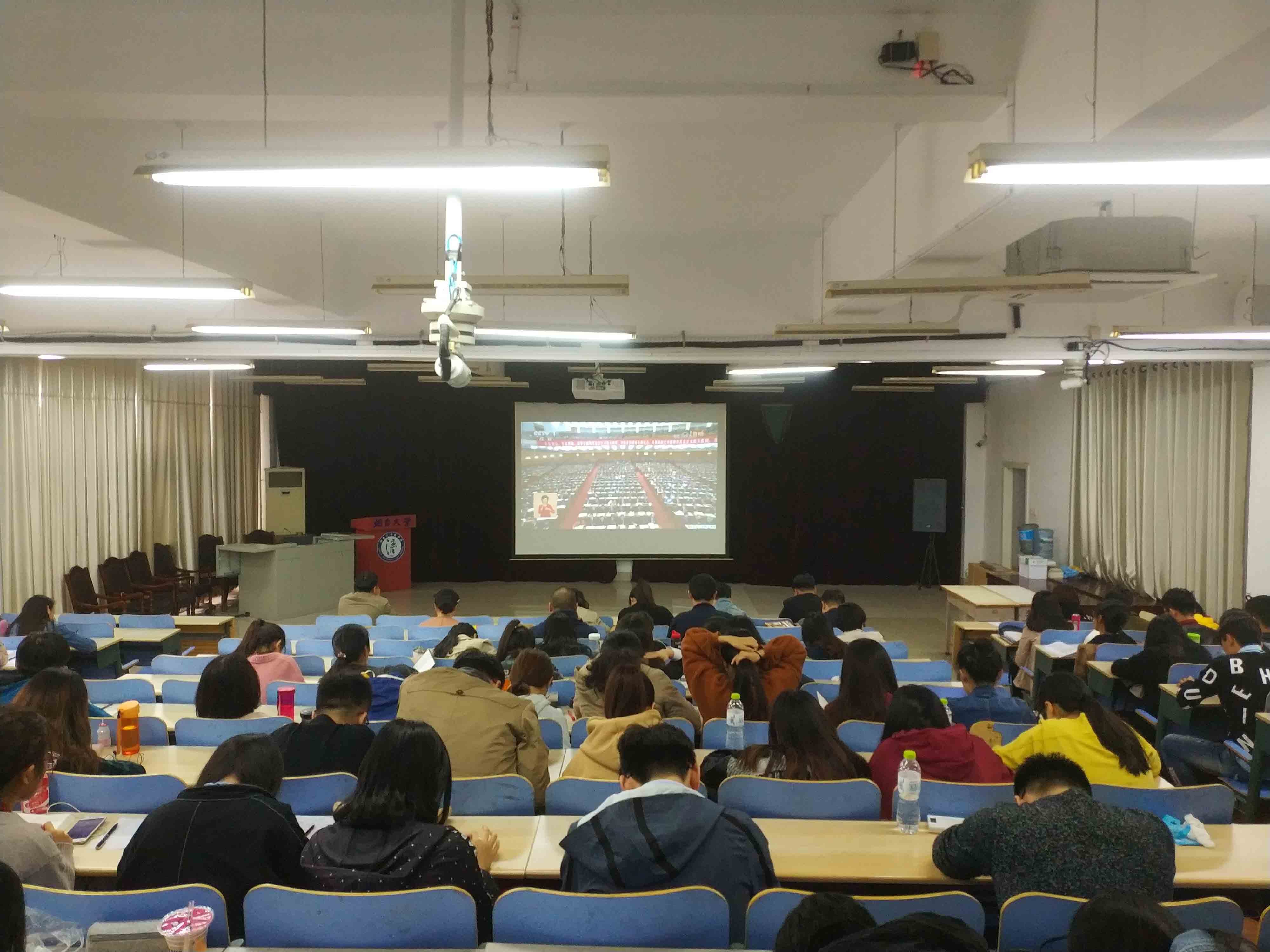 213报告厅集中收看了十九大开幕式盛况,未能到场的师生也纷纷通过广播、电视、网络等收听收看会议盛况。
