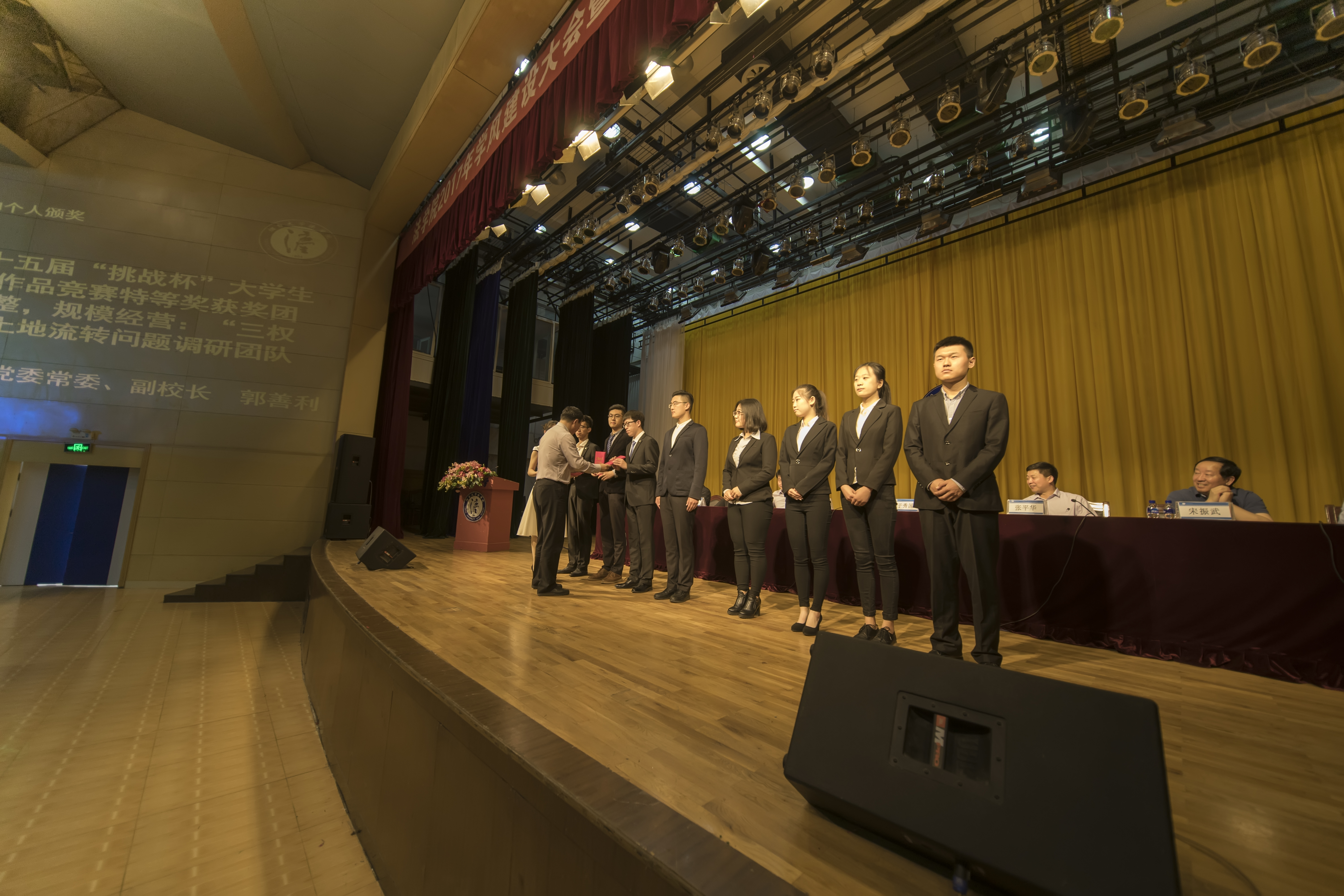 接下来,对荣获山东省第十五届“挑战杯”大学生课外学术科技作品竞赛特等奖、一等奖的获奖作品作者团队、2017年“山东高校十大优秀学生”获奖者法131-1班王振宇,以及荣获2016年“全国高校活力团支部”、2016年度山东省先进班集体、荣获校级荣誉的12个班团集体进行了表彰奖励。并对2016年度韩国av 优秀宿舍,2017年春季运动会表现突出个人和团体、韩国av “升腾杯”学术科技作品竞赛优秀作品等先进集体和个人进行了表彰奖励。随后开展了“思源”专项奖学金颁发仪式,学院从32项申报项目中,经过评审,对在大学生创业、学科竞赛、科研创新、社会实践和志愿服务等领域做出突出成绩的17个团队或个人进行了表彰,并发放了总额达39500元人民币的奖励。