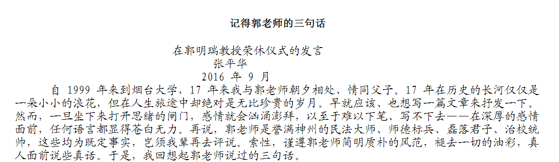 在郭明瑞教授荣休仪式的发言
