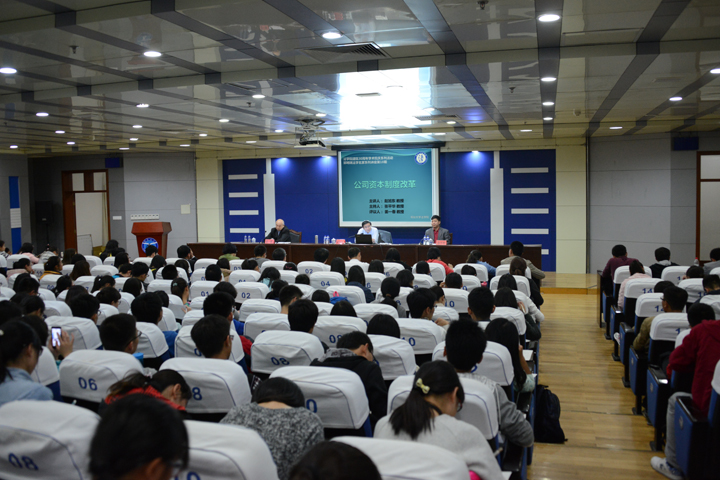 2013年12月28日,第十二届全国人民代表大会常务委员会第六次会议通过对《中华人民共和国公司法》所作的修改,自2014年3月1日起施行。《公司法》的修改对公司资本制度乃至整个法制制度都起到了举足轻重的作用,不仅是法律人所关心的问题,也成为整个经济领域人人关注的重点。赵旭东教授从公司资本制度的改革内容和法律适用两个方面进行了讲述,首先为师生详细的阐述了2013年《公司法》改革的主要内容、修改的突然、迅速和特别以及资本制度改革的立法目标和价值取向等问题。接着又对资本制度改革的几个误解问题进行了解读。最后,赵旭东教授对资本改革后的法律适用问题从众多方面发表了自己的独特的见解。互动环节,师生就《公司法》修改的相关问题进行了深入的交流研讨。张平华教授和姜一春教授分别从宏观和微观的视角对讲座进行了精彩的点评,指出我们应该正确的对法律制度进行解读,不满足于宏观的研究,还要落实到微观中,在实践中澄清问题。