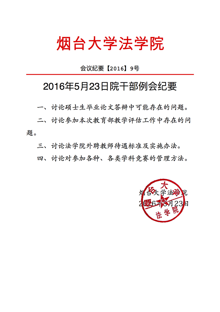 2016年5月23日院干部例会纪要