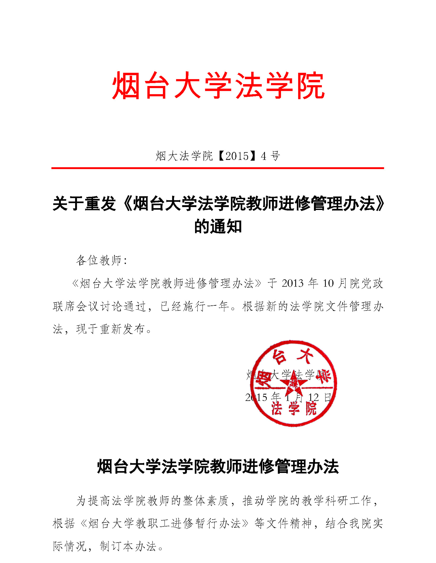 烟大韩国av 【2015】4号韩国av 教师进修管理办法