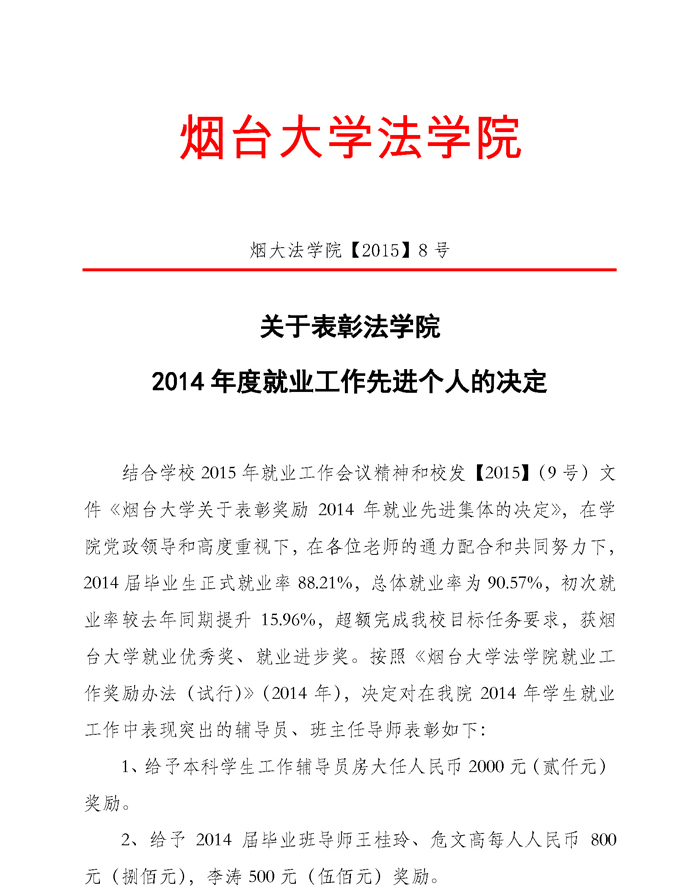 烟大韩国av 【2015】8号关于表彰韩国av 2014年度就业工作先进个人的决定