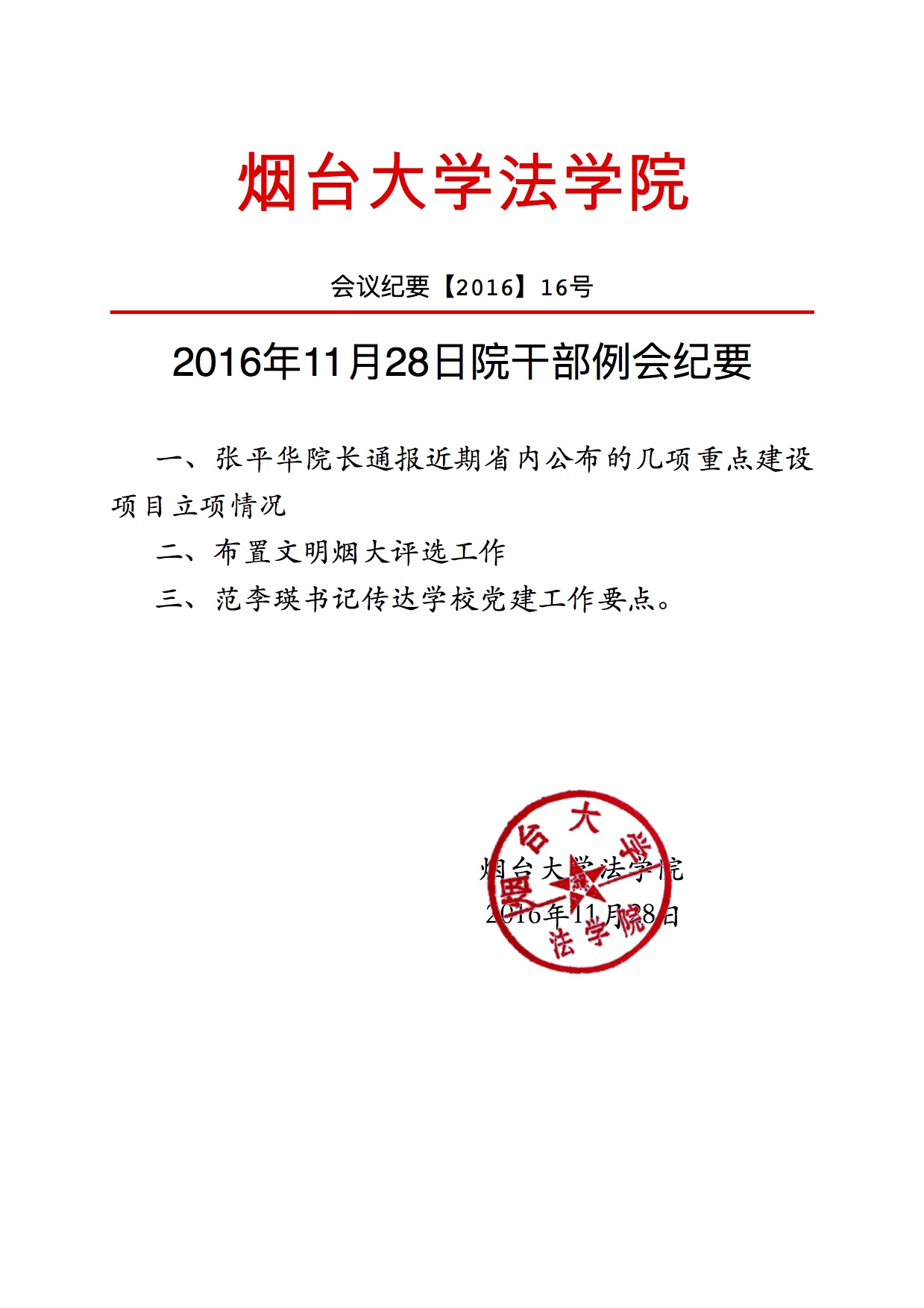 2016年11月28日干部例会纪要