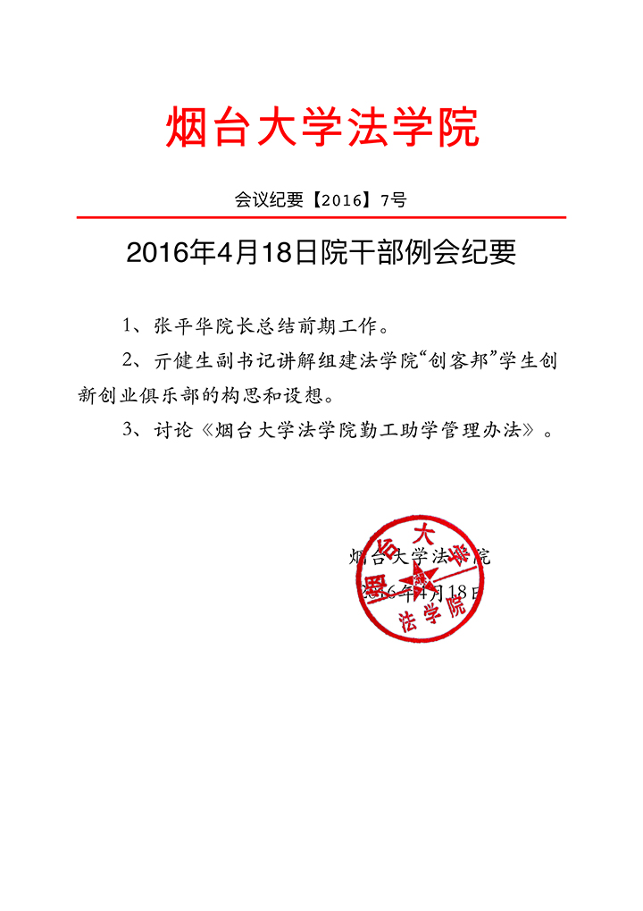 2016年4月18日院干部例会纪要