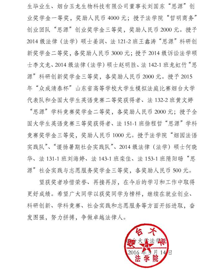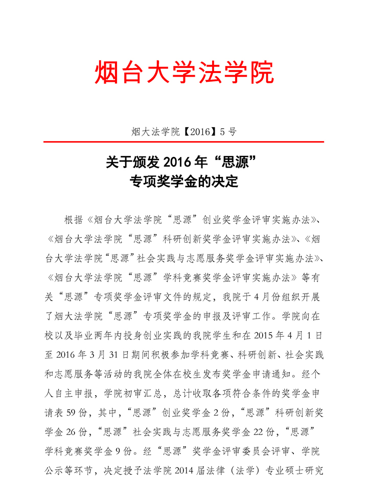 烟大韩国av 【2016】5号关于颁发2016年“思源”专项奖学金的决定